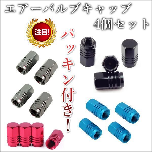 タイヤバルブキャップ パッキン付き 4個セット アルミ 軽量 カラー 車 装飾 アクセサリー カー